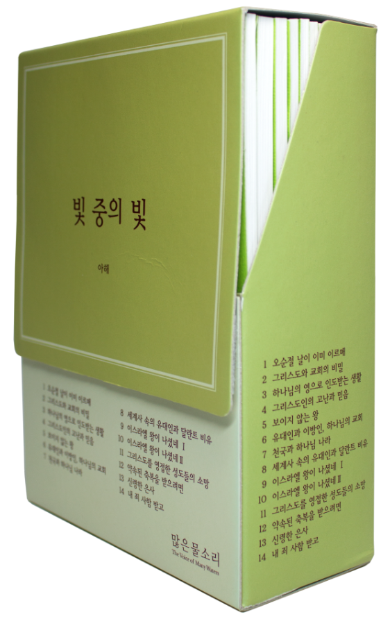 새로 거듭난 사람은 물론, 그리스도인이라면 반드시 알아야 할 말씀들을 모아 열네 권의 단행본으로 엮었습니다. 기본 메시지인 이 말씀을 몇 번이고 익히고 나면 다른 어떤 말씀도 흐름을 놓치지 않고 쉽게 이해할 수 있을 것입니다. 교회와 교제, 이스라엘의 역사와 그리스도인의 생활에 대한 각각의 말씀들을 통해 자신을 먼저 돌아보고 우리가 받은 그 크신 사랑에 감사할 수 있기를 바랍니다.